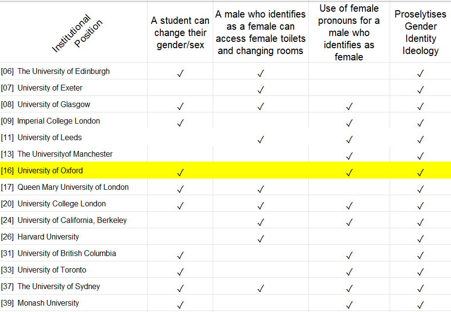 41 leading international universities are so ideologically captured by the ‘Trans’ lobbies and their TWAW indoctrination that they refused to provide academic clarity on the binary and immutable nature of human sex to steer the sex versus gender/gender identity debate in a direction informed on science and not belief.